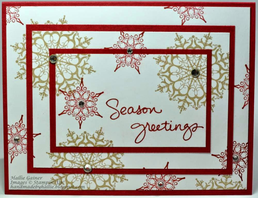 On Wednesday I will show you the Christmas card that made the final cut so I (with help from my hubby) will be duplicating it to send out later this week. On Thursday I will do a little Throwback and show you a few of my cards from Christmas 2012 - all of which my mother took hostage for her box of Handmade by Hallie cards!